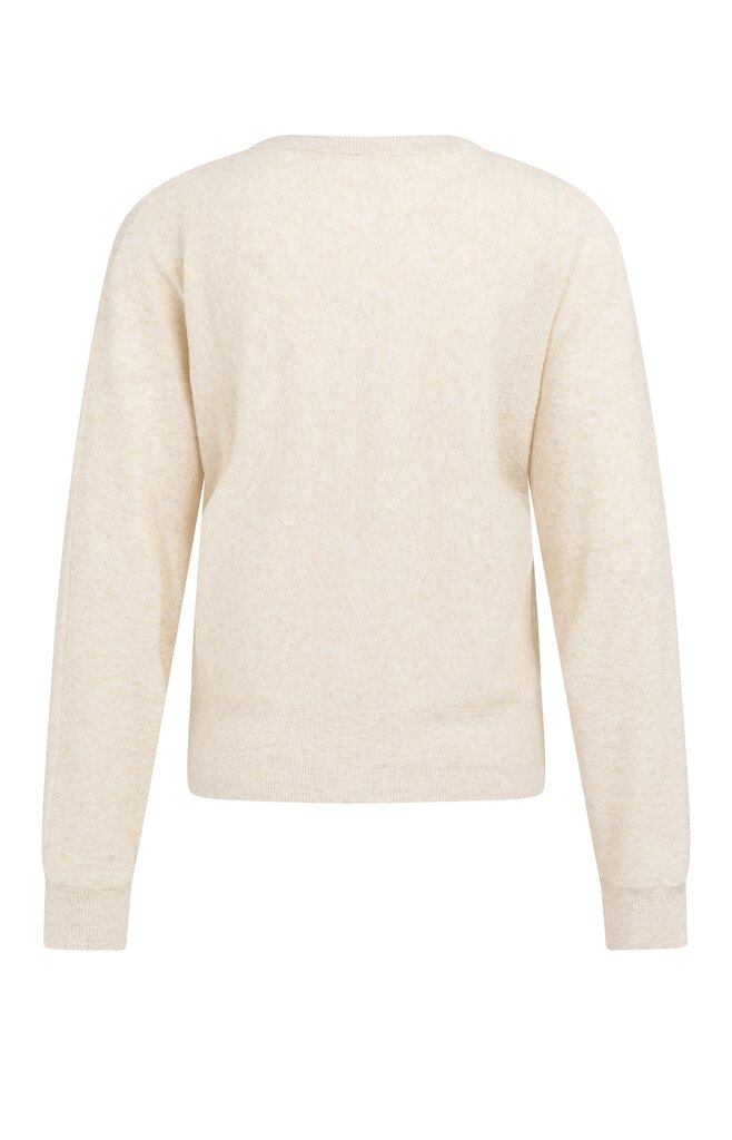 Dit vest heeft een tijdloze uitstraling en is uitgevoerd in een zachte, subtiel gemêleerde stof met een structuur die doet denken aan badstof. Het ontwerp is voorzien van een ronde hals, lange mouwen en een knoopsluiting aan de voorzijde met deels verborgen knopen voor een verfijnde afwerking. De comfortabele pasvorm en fijne details maken dit vest ideaal voor dagelijks gebruik.