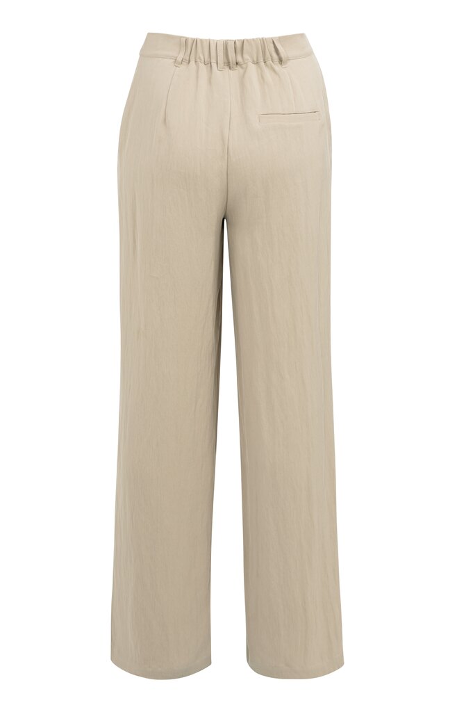 Deze luchtige broek is gemaakt van een soepele geweven stof en heeft een normale pasvorm met wijde pijpen. De plooien aan de voorzijde zorgen voor een elegante uitstraling, terwijl de elastische tailleband aan de achterkant extra comfort biedt. Voorzien van steekzakken en een paspelzak achter.