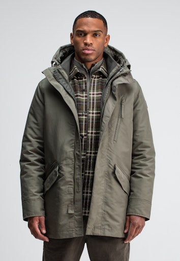 Onze Galena, is de winterjas van Butcher, de Galena is een half lange parka die bestaat uit twee los te dragen jassen, de buitenste jas is een stoer parka model gemaakt van hoogwaardige katoen/nylon stof die wind en waterdicht is met een waterkolom van 2.000