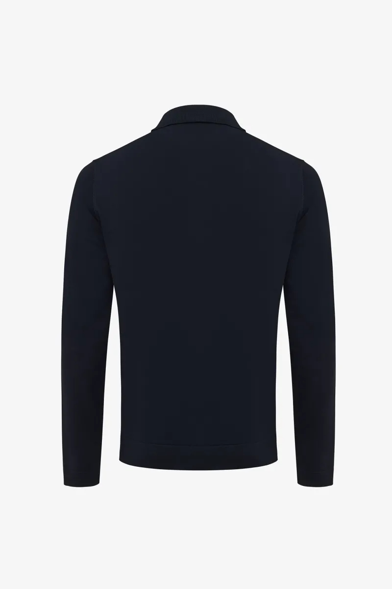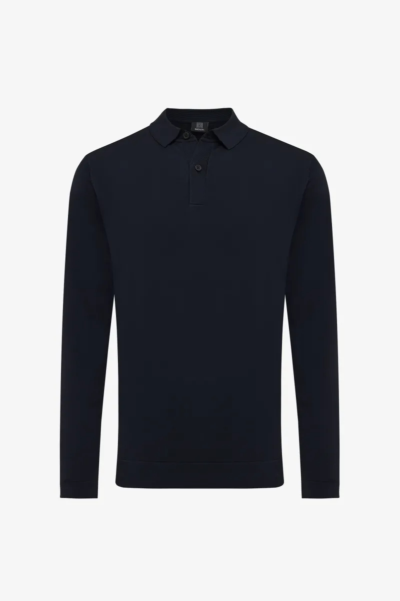 Donkerblauwe longsleeve polo met een slim fit pasvorm. Gemaakt van een ademende cool dry kwaliteit met stretch voor optimaal draagcomfort, combineer met een bijpassende broek voor een complete look