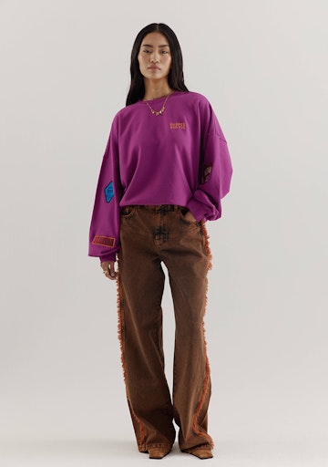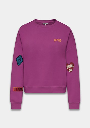 Deze trui met patches is verkrijgbaar in de kleur Violet en is gemaakt van 100% Katoen