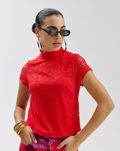 Deze Vief top is verkrijgbaar in de kleur Poppy Red