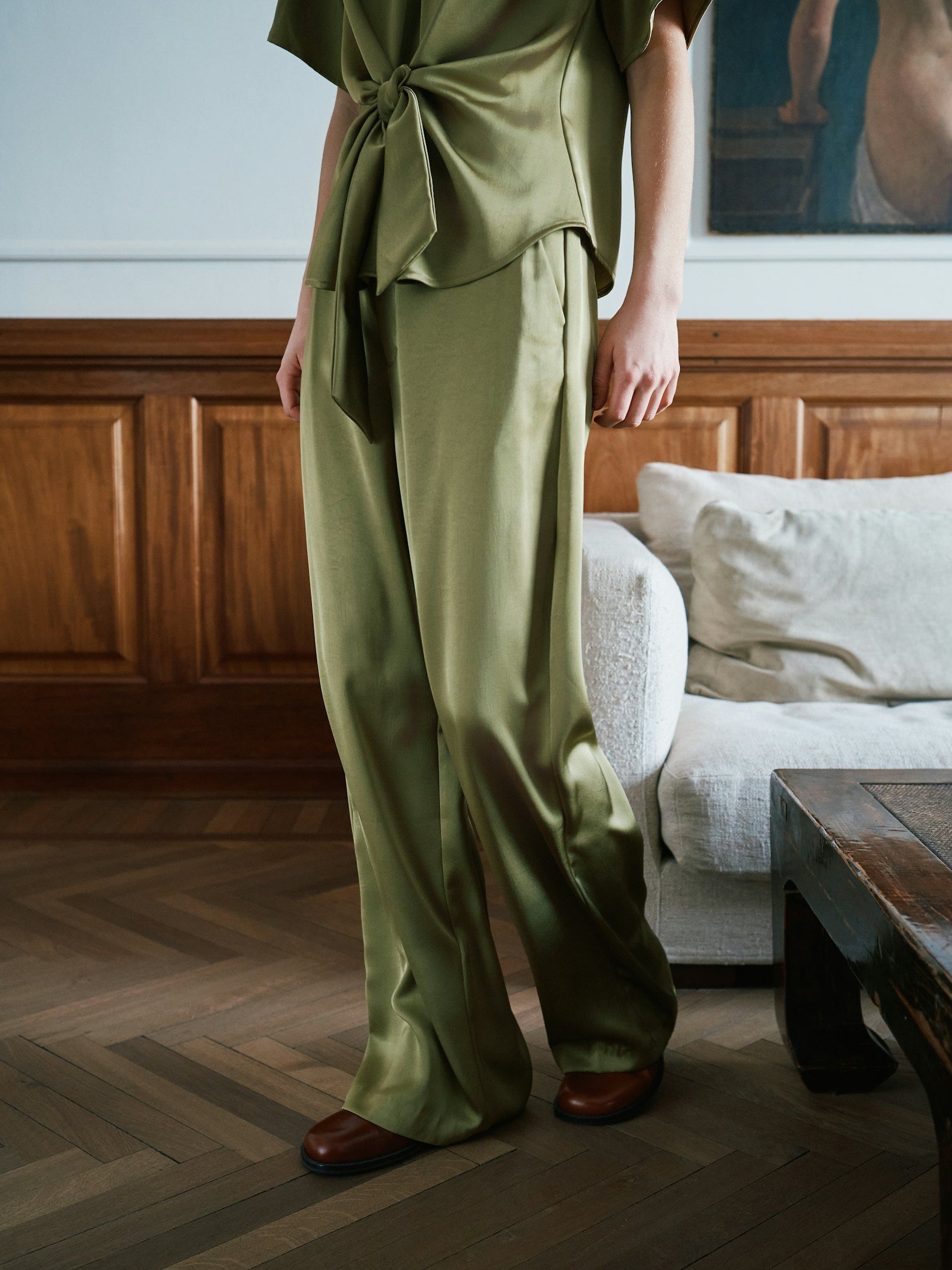 Deze Emmett Sateen Pants is verkrijgbaar in de kleur Sage Green meer