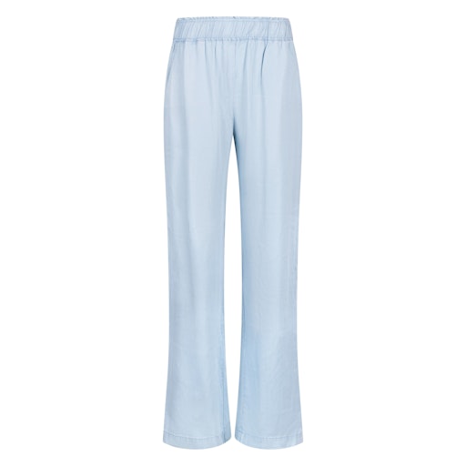 Deze broek van 100% Tencel heeft een op maat gemaakte pasvorm en een elastische tailleband, waardoor hij iets ruimer valt en heerlijk draagt. De zakjes voegen een speels en praktisch detail toe, terwijl de kleur cloudy zorgt voor een frisse voorjaarslook.