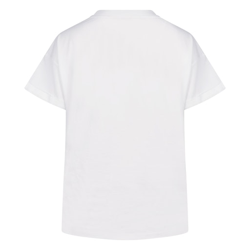 Het Riuka shirt van Nukus is een elegante en luchtige top met een vrouwelijke uitstraling. De offwhite kleur vormt een frisse basis, terwijl het gouden design met subtiele pailletten een speels en opvallend detail toevoegt. Het 100% katoenen materiaal voelt zacht en comfortabel aan, ideaal voor het voorjaar. Dankzij de lichte pasvorm draagt het shirt makkelijk en combineer je het met jeans, een rok of lichte broek voor een moeiteloze look