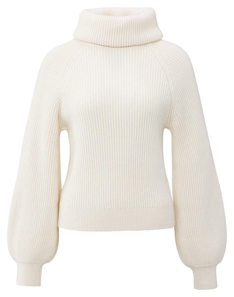 Deze elegante trui is vervaardigd uit een zachte, grofgebreide stof en heeft een wijde col, de lange ballonmouwen en geribde boorden geven het ontwerp een vrouwelijke touch