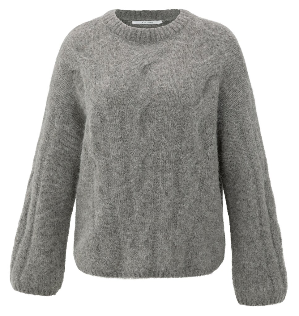 Deze gebreide trui is gemaakt van een zachte, wollige mix en is voorzien van een klassiek kabelpatroon aan zowel de voor- als achterkant, de trui heeft een ronde hals, lange mouwen en een comfortabele, rechte pasvorm