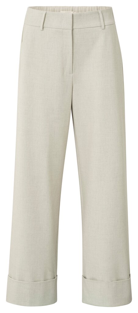 Deze elegante broek is gemaakt van een zachte, gestructureerde geweven stof en is ontworpen met een middelhoge taille en wijde pijpen, de opvallende brede omslagen aan de zoom geven een moderne twist