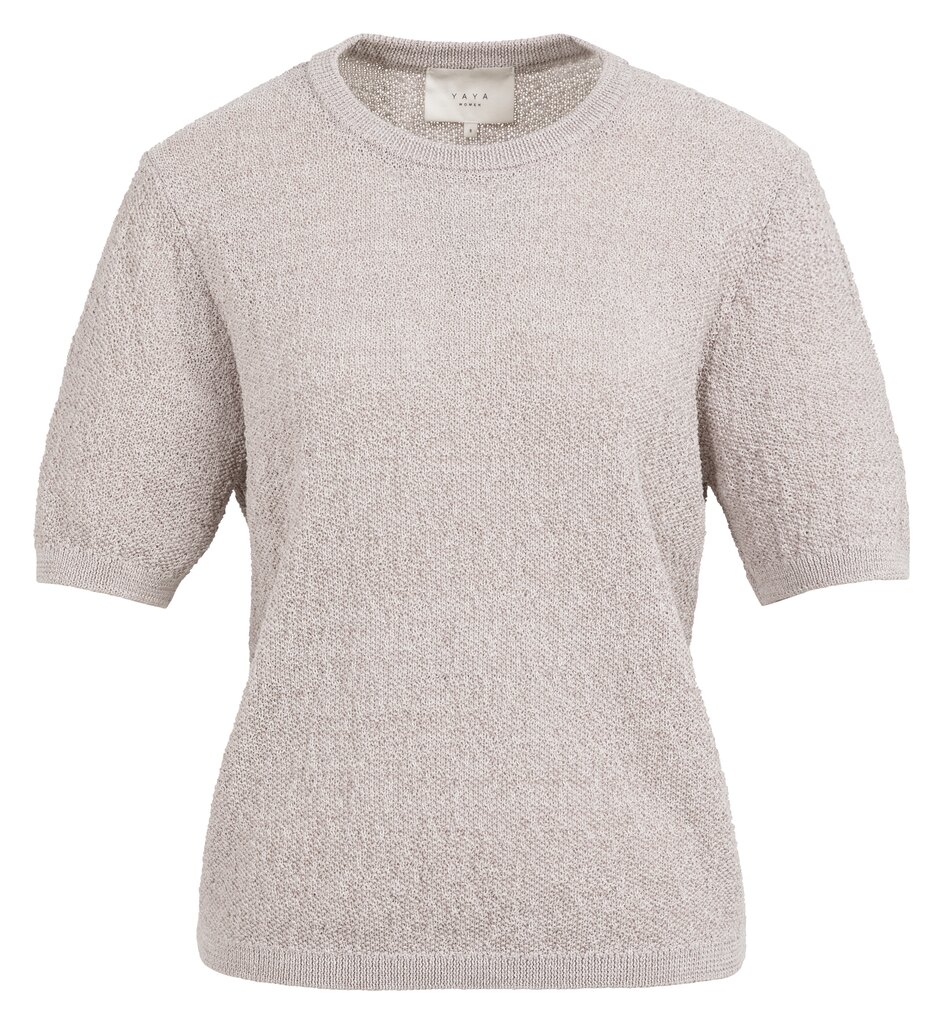 Deze luchtige trui is gebreid in een gestructureerde steek en heeft korte mouwen, een ronde...meer