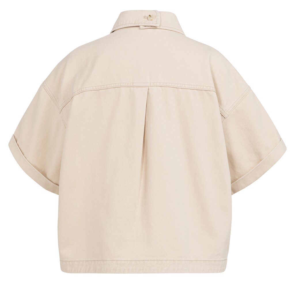 Dit jasje is gemaakt van stevige katoenen denim twill en heeft een oversized pasvorm met korte mouwen. Het ontwerp is voorzien van een klassieke kraag, knoopsluiting en twee opgestikte zakken op de borst. De plooi op de rug en het rugdetail geven een speelse touch aan dit tijdloze item.