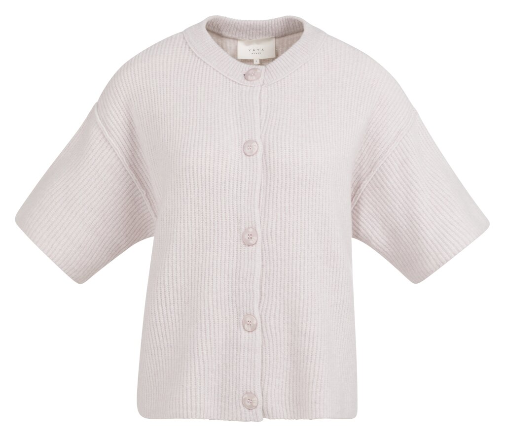 Dit comfortabele vest is vervaardigd uit een zachte ribgebreide stof en heeft een losse pasvorm. Het model is ontworpen met wijde korte mouwen, een ronde halslijn en een knoopsluiting aan de voorzijde. De minimalistische look maakt dit item perfect om gelaagd te dragen over een top of blouse.